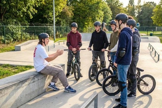Omdat BMX perfect past bij de skate mentaliteit: actie, flow en grenzen verleggen, zonder prestatiedruk. Leerlingen ervaren hoe het voelt om progressie te maken — en dat je samen verder komt als je elkaar support.