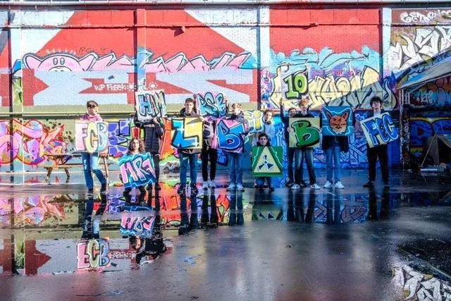 Graffiti en skatecultuur gaan al decennia lang samen. Skateparks, boards en plekken in de stad vertellen vaak verhalen via kleur en tags. In deze workshop ontdekken leerlingen dat graffiti niet gaat om “zomaar spuiten”, maar om vormgeving, stijl en expressie — met respect voor de omgeving en voor elkaars werk.